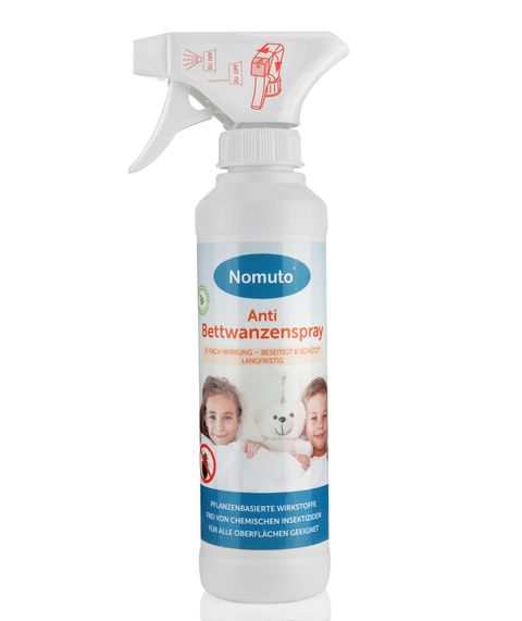 Das Nomuto® Anti-Bettwanzenspray beseitigt und schützt vor Bettwanzen auf natürliche Weise. Es kann auf allen Textilien und für die Umgebung eingesetzt werden (Sofas, Matratzen, Kissen, Kleidung, Teppiche, Fußleisten etc.). Da viele Heimtextilien schwer oder gar nicht waschbar sind, bietet das Anti-Bettwanzenspray daher die optimale Lösung. Dieses Insektizid tötet unmittelbar die Bettwanzen ab und schützt vor Neubefall.